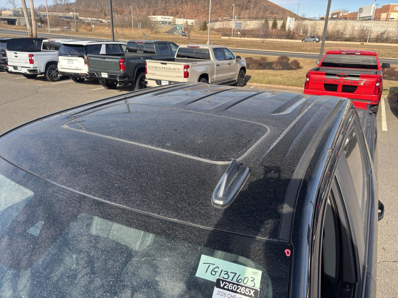 Thank you for choosing Bridgewater Chevrolet, this Black 2026 Chevrolet Silverado 1500LT Trail Boss is a great choice! Checkout the following: City15/HWY 18 EMISSIONS, COLORADO, CONNECTICUT, DELAWARE, MAINE, MARYLAND, MASSACHUSETTS, MINNESOTA, NEVADA, NEW JERSEY, NEW MEXICO, NEW YORK, OREGON, PENNSYLVANIA, RHODE ISLAND, VERMONT AND WASHINGTON STATE REQUIREMENTS, ENGINE, 5.3L ECOTEC3 V8, TRANSMISSION, 10-SPEED AUTOMATIC, GVWR, 7100 LBS. (3221 KG), REAR AXLE, 3.23 RATIO, WHEELS, 20" X 9" (50.8 CM X 22.9 CM) HIGH GLOSS BLACK PAINTED ALUMINUM, TIRES, 275/60R20SL ALL-TERRAIN, BLACKWALL, TIRE, SPARE 255/80R17SL ALL-SEASON, BLACKWALL, BLACK, SEATS, FRONT BUCKET, JET BLACK, LEATHER-APPOINTED FRONT OUTBOARD SEATING POSITIONS, AUDIO SYSTEM, CHEVROLET INFOTAINMENT 3 PREMIUM SYSTEM, CONVENIENCE PACKAGE II, SAFETY PACKAGE, LEATHER PACKAGE, PROTECTION PACKAGE, SHIFTER, ELECTRONIC TRANSMISSION RANGE SELECTOR, COOLING, EXTERNAL ENGINE OIL COOLER, COOLING, AUXILIARY EXTERNAL TRANSMISSION OIL COOLER, ALTERNATOR, 170 AMPS, EXHAUST, DUAL WITH POLISHED OUTLETS, SUNROOF, POWER, LPO, BLACK TUBULAR ASSIST STEPS, 6" RECTANGULAR, CHEVYTEC SPRAY-ON BEDLINER, BLACK, LPO, HARD FOLDING TRUCK BED COVER BY REALTRUCK ADVANTAGE, WHEELHOUSE LINERS, REAR, LIGHTING, PERIMETER, LICENSE PLATE KIT, FRONT, TAILGATE, MULTI-FLEX, BOSE SOUND SYSTEM, PREMIUM 7-SPEAKER SYSTEM, SEAT, UP-LEVEL REAR WITH STORAGE PACKAGE, CENTER CONSOLE, FLOOR-MOUNTED, WINDOW, POWER, REAR SLIDING, UNIVERSAL HOME REMOTE, WIRELESS CHARGING, USB PORTS, 2, CHARGE/DATA PORTS LOCATED INSIDE CENTER CONSOLE, REAR CROSS TRAFFIC BRAKING, FRONT AND REAR PARK ASSIST, ULTRASONIC, HD SURROUND VISION, TRAILER CAMERA PROVISIONS, HITCH GUIDANCE WITH HITCH VIEW, IN-VEHICLE TRAILERING APP, SYSTEM, TRAILER SIDE BLIND ZONE ALERT, REAR PEDESTRIAN ALERT Convenience Package II ($1,065 value)Power Sliding Rear Window with Rear DefoggerHitch Guidance with Hitch ViewIn-Vehicle Trailering System AppUniversal Home RemotePremium Bose 7-Speaker Sound SystemLeather Package ($985 value)Leather-Appointed Front Seat TrimUp-Level Rear Seat with Storage PackageSafety Package ($1,115 value)Trailer Camera ProvisionsPerimeter LightingUltrasonic Front and Rear Park AssistRear Cross Traffic BrakingRear Pedestrian AlertTrailer Side Blind Zone AlertHD Surround VisionPreferred Equipment Group 2LTSiriusXM with 360L Trial SubscriptionRear 60/40 Folding Bench Seat (folds Up)All-Weather Floor LinerPower Front Windows with Passenger Express DownPower Rear Windows with Express DownDeep-Tinted GlassPower Front Windows with Driver Express Up/downColor-Keyed Carpeting Floor CoveringBluetooth® For PhoneInside Rearview Mirror with TiltHeated Power-Adjustable Outside MirrorsHigh Gloss Black Mirror CapsAuto-Locking Rear DifferentialIntegrated Trailer Brake ControllerElectronic Cruise Control2-Speed Electronic Autotrac Transfer CaseConvenience PackageChevy Safety Assist275/60R20SL AT BW TiresStandard TailgateEZ Lift Power Lock and Release Tailgate20" X 9" High Gloss Black Painted Aluminum WheelsFront LED Fog LampsTeen Driver12.3" Multicolor Reconfigurable Digital DisplayOnStar Services CapablePerformance Red Recovery HooksTire Pressure Monitoring SystemSteering Wheel Audio Controls6-Speaker Audio SystemHD Rear Vision CameraSuspension PackageTrailering PackageProtection Package ($685 value)Rear Wheelhouse LinersChevytec Spray-On Black Bedliner Safety and Security Forward collision mitigation - Forward thinking. You look away for just a second and suddenly the vehicle in front of you has stopped. That's when the forward collision mitigation system comes to life. When it senses an impending impact, it will activate a combination of features to help prevent or reduce the severity of an accident. Forward collision mitigation is always looking ahead. Pedestrian impact prevention - An extra step toward safety. Pedestrians don't always stop, look, and listen, but with Pedestrian Impact Prevention, your vehicle is equipped to better see them and avoid them. Th
